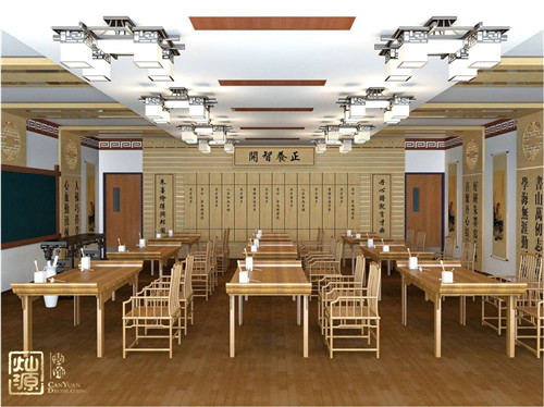 南寧教育空間設計裝修增加生源的小妙招之一是把學生快速地連接起來。而把學生快速連接起來的方法是將空間設計成一個有藝術氛圍的空間,特別能把對藝術或者是設計感興趣的學生連接起來。而國學教育氣息是教育空間設計裝修增加生源的第二法寶,在眾多的教育內容中提倡國學經典教育,這是因為對于孩子來說,國學經典教育是較有價值、較美的的教育,是奠定他一生幸福的根本。