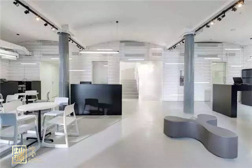 我們先看這里簡潔的白色墻面與地面為主色調(diào),兩根灰色的羅馬柱與灰色調(diào)的家具相呼應整體設計簡約、時尚。辦公桌椅擺放得井然有序,該有的辦公設備都有相對應得位置,沒有多余的雜物,看上去非常舒服,還能緩和急躁的心情。