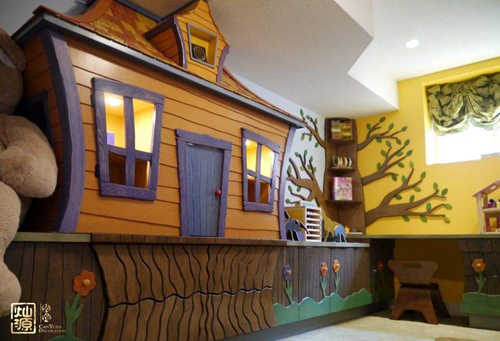 在有危險的樓梯間嬉戲攀爬,把墻壁當成“涂鴉墻”亂寫亂畫,用繩索代替樓梯下滑、跳躍、嗨翻天!這些略帶危險的國外幼兒園設計開始影響到國內設計。在幼兒園這個場所采用開放式的空間設計,具有四季特色的顏色在這個空間里邊體現出來。郁郁蔥蔥的樹木環繞四周,中間包圍著一汪寧靜的湖泊,自然風光給予孩子們無窮的快樂,有一種置身于田園的感覺。園區內的水池設計,讓室內變得更加涼爽,特別是在夏天的時候,孩子們可以把腳伸進水池納涼。室內的活動區域,也完全根據孩子們的身高、體質進行規劃。