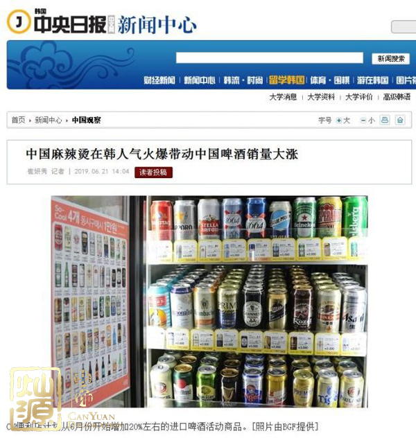 《中央日報》中文網的報道說,韓國CU便利店對最近五年各國啤酒的銷量比例進行分析后發現,一直穩居銷量榜第一名的日本啤酒銷量有所下降,而中國啤酒的銷量則大幅上升,成了市場的新興“強者”,這與麻辣燙在韓受歡迎不無相關!