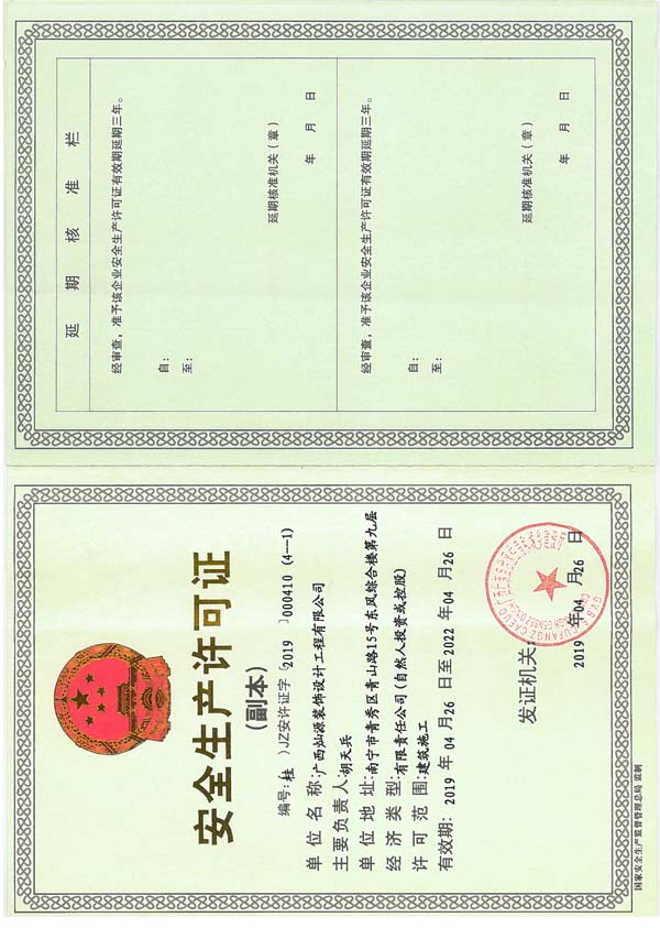 燦源裝飾安全生產(chǎn)許可證